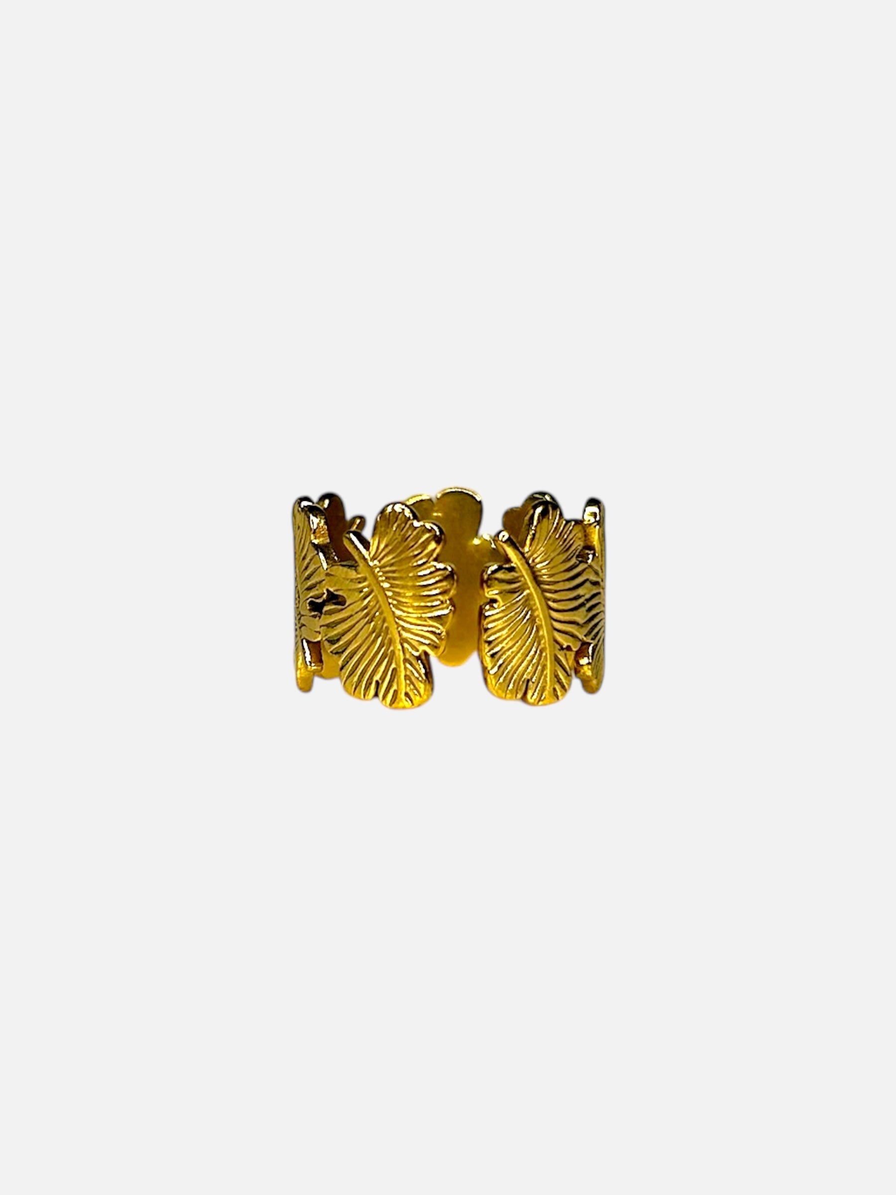 Laissez la nature orner vos mains avec la bague "Eden", une pièce dorée à l’inspiration végétale. Son motif de feuilles finement ciselées rappelle les jardins sauvages et les trésors cachés de la forêt. Une bague douce, poétique et pleine de charme.