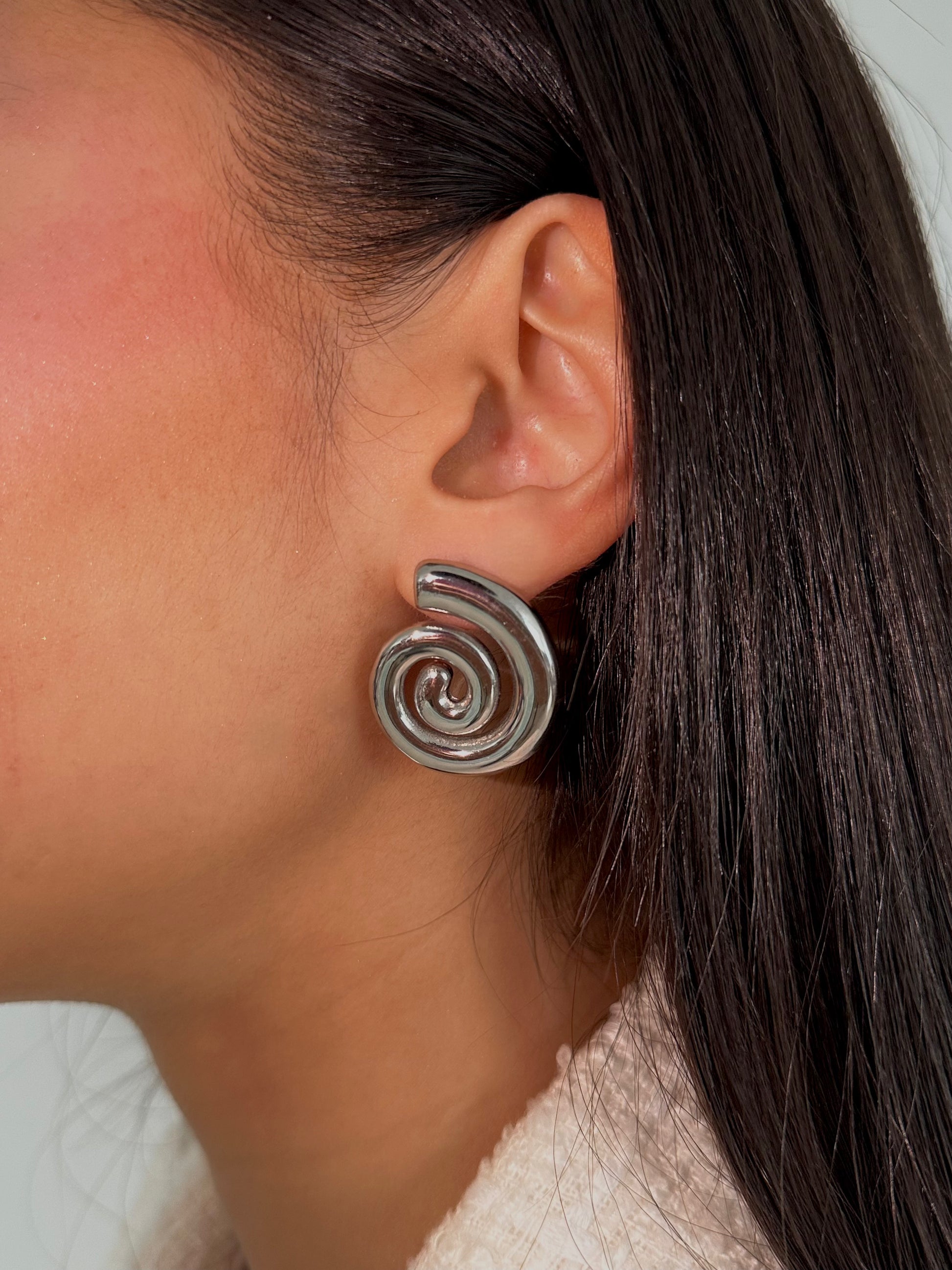 Les boucles d'oreilles "Héliore" captivent par leur design ondulé unique en forme de spirale, réalisé en acier inoxydable argenté. Avec une finition lisse et brillante, elles apportent une touche moderne et raffinée à vos tenues.