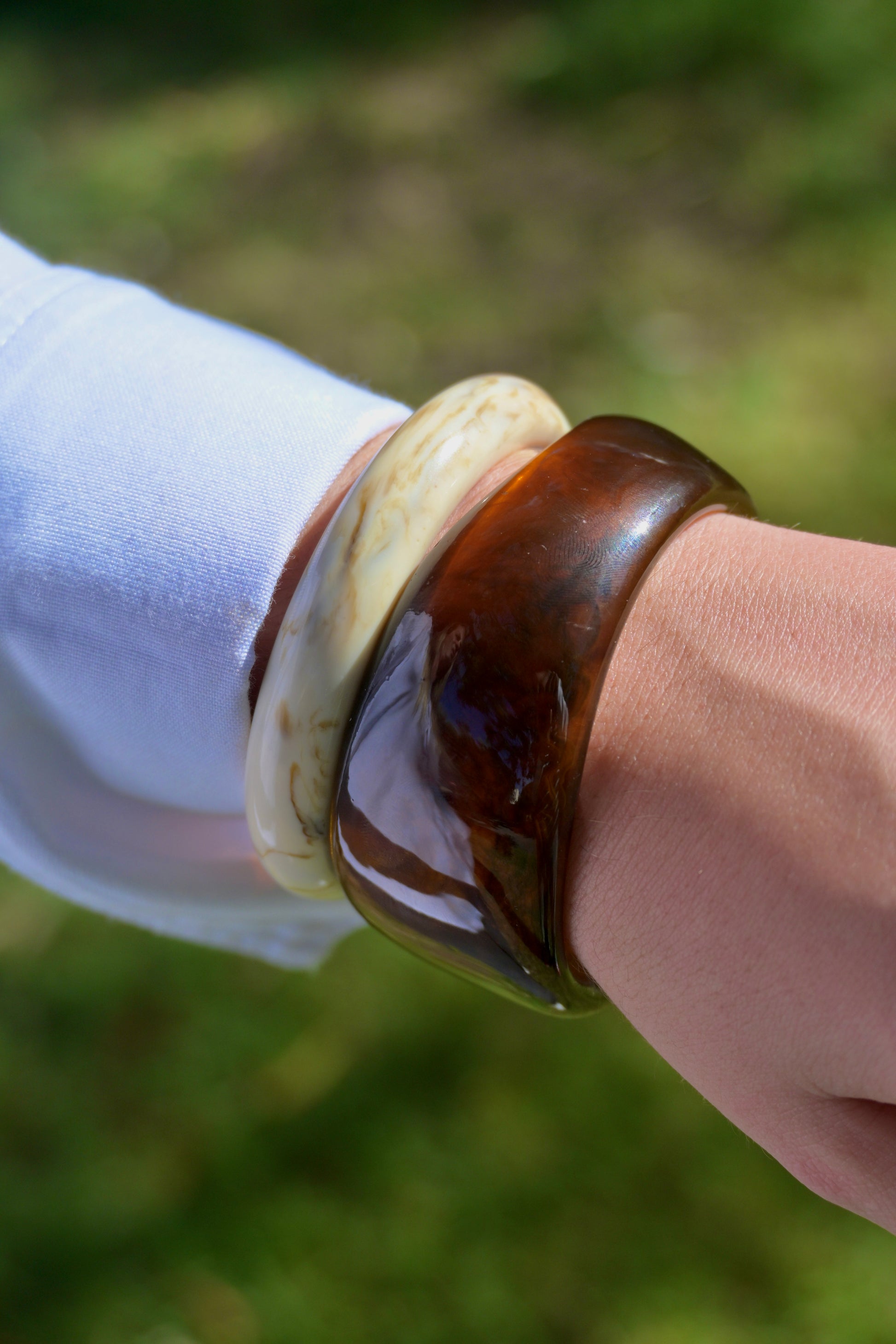 Ajoutez une touche rétro à vos looks avec le bracelet "Armonia", une pièce sculptée dans une résine ambrée au fini brillant. Sa forme épaisse et bombée lui donne du caractère tout en restant ultra confortable à porter. Parfait pour compléter une tenue minimaliste ou bohème avec une touche vintage.