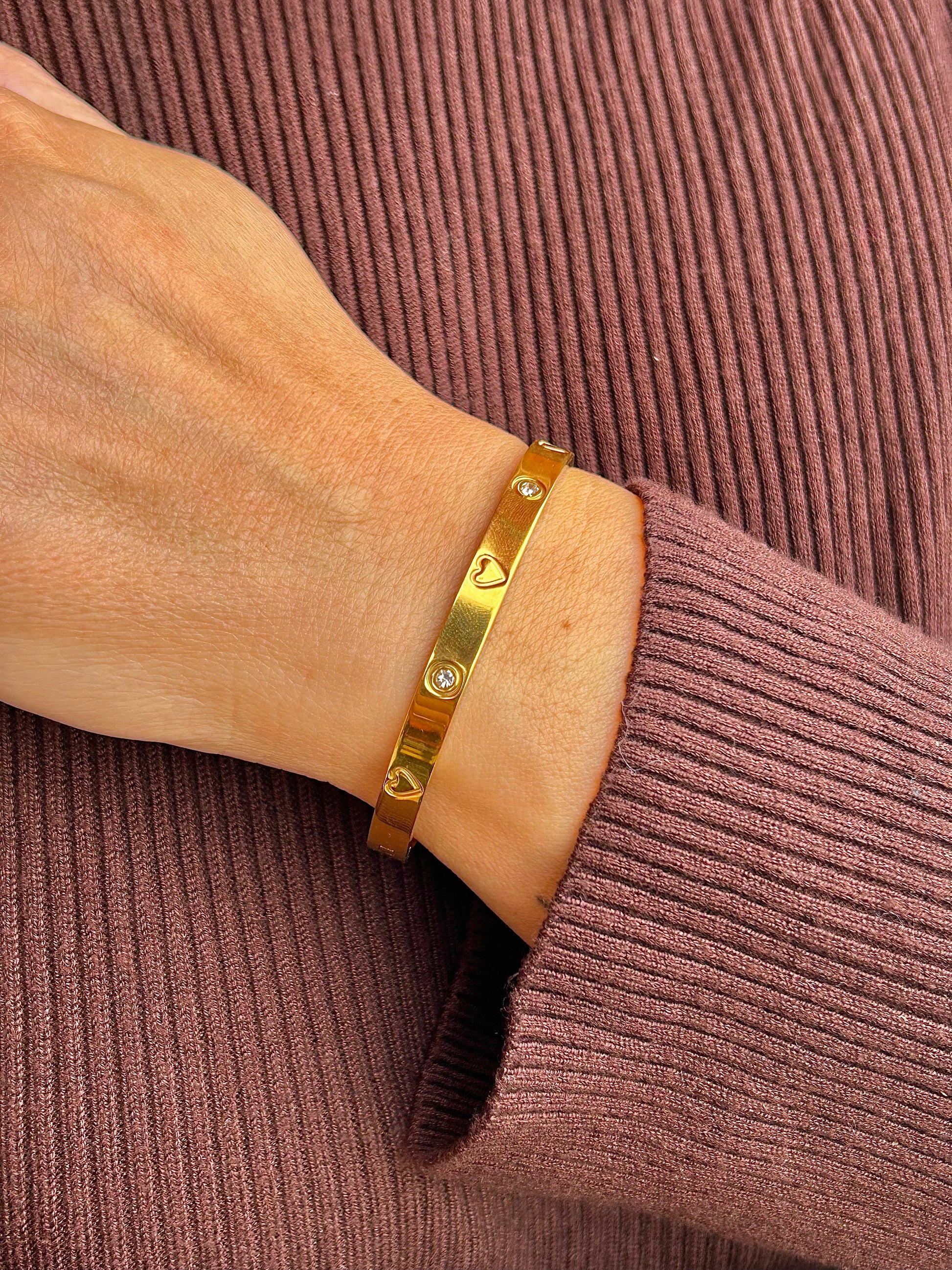Design : Jonc rigide avec motifs cœurs gravés et cristaux incrustés