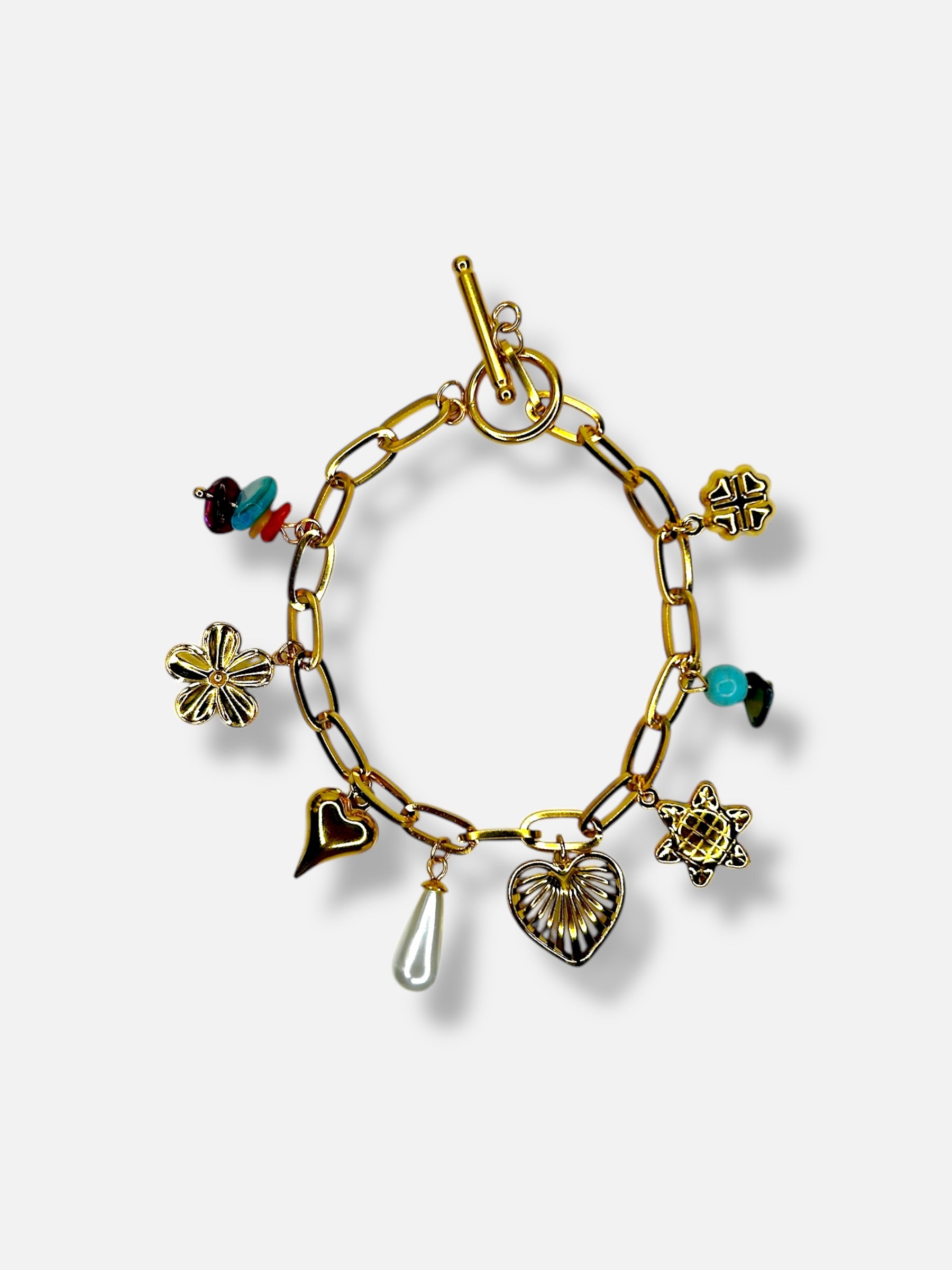 Portez une touche de bonheur au poignet avec le bracelet "Liora", une pièce éclatante et pleine de charme. Entre ses charms dorés symboliques et ses perles colorées, il évoque la chance, l’amour et l’énergie positive à chaque mouvement.