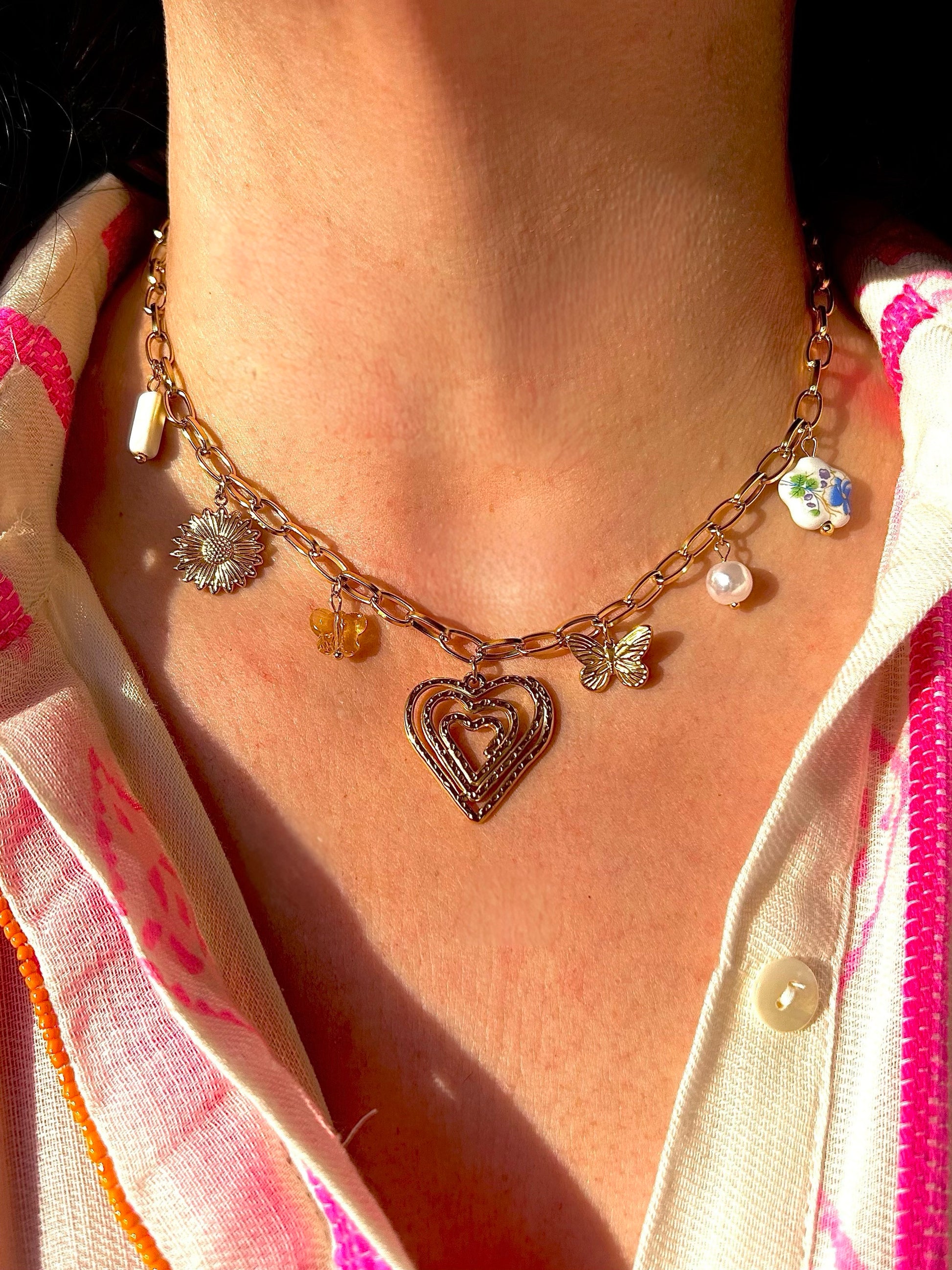 Rayonnez de douceur avec le collier "Flavie", un bijou printanier et lumineux qui célèbre l’amour, la nature et la joie. Chaque charm raconte une émotion : un cœur battant, un papillon en liberté, une perle scintillante... Une invitation à aimer et à s’épanouir pleinement.